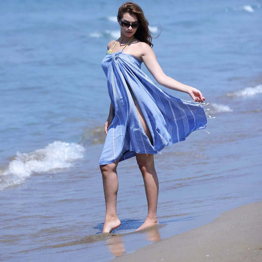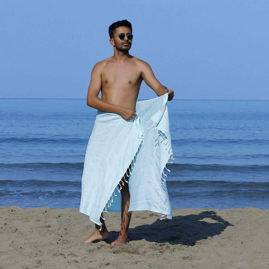Loom Legacy Extra Large Turkish Beach Towel - 100% Cotton Peshtemal - Aqua